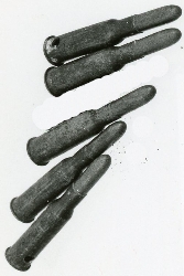 Naboje do karabinu Mannlicher wz. 95 5 sztuk. Łuski przewiercone z nalotem korozji. Bicia nieczytelne. |