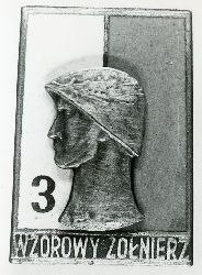 Odznaka Wzorowy żołnierz 3. Wykonana z emaliowanego mosiądzu. Prostokątna biało-czerwona tarcza z głową żołnierza w hełmie pośrodku. Na dole napis: WZOROWY ŻOŁNIERZ, w białym polu tarczy nr 3. Na odwrocie znajduje się gwintowany trzpień z nakrętką, na której wytłocz...więcej Odznaka Wzorowy żołnierz 3. Wykonana z emaliowanego mosiądzu. Prostokątna biało-czerwona tarcza z głową żołnierza w hełmie pośrodku. Na dole napis: WZOROWY ŻOŁNIERZ, w białym polu tarczy nr 3. Na odwrocie znajduje się gwintowany trzpień z nakrętką, na której wytłoczony jest napis: Mennica Państwowa. |