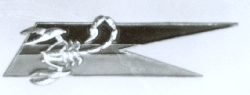 Metalowy proporczyk pokryty emalia czarną, amarantową i beżową ze znakiem skorpiona. Znaczek 4 pułku pancernego "Skorpion" wchodzącego w skład 2 Warszawskiej Brygady Pancernej. Na tylnej ścianie nieczytelny napis, urywana gwint do zakrętki. |