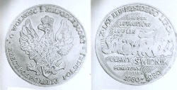 Awers: Centralnie umieszczony napis "Solidarność" z odchodzącymi promieniami, pomiędzy niemi nazwy miejscowości : Kraśnik, Lubartów, Lublin, Puławy, Świdnik, Poniatowa.