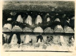 Fotografia czarno- biała przedstawiająca prawdopodobnie plac apelowy przy koszarach (obozie). Na pierwszym planie widać klęczących żołnierzy zwróconych twarzami do ołtarza polowego na którym odbywa się msza. Na dalszym planie widoczne parterowe, drewniane baraki. Na odwrocie...więcej Fotografia czarno- biała przedstawiająca prawdopodobnie plac apelowy przy koszarach (obozie). Na pierwszym planie widać klęczących żołnierzy zwróconych twarzami do ołtarza polowego na którym odbywa się msza. Na dalszym planie widoczne parterowe, drewniane baraki. Na odwrocie fotografia zadrukowana jak karta pocztowa ze znaczkiem pocztowym, zapisana pismem odręcznym. |