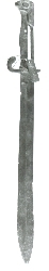 Bagnet niemiecki wz.1898/05 bez pochwy. Rękojeść stalowa, lekko wygięta, brak okładzin drewnianych. Głowica posiada zatrzask do mocowania bagnetu (niesprawny). Jelec stalowy ze szczątkową nasadką, przednie ramie jelca wygięte ku górze. Głownia stalowa długości 359 mm, z p...więcej Bagnet niemiecki wz.1898/05 bez pochwy. Rękojeść stalowa, lekko wygięta, brak okładzin drewnianych. Głowica posiada zatrzask do mocowania bagnetu (niesprawny). Jelec stalowy ze szczątkową nasadką, przednie ramie jelca wygięte ku górze. Głownia stalowa długości 359 mm, z pojedynczą bruzdą, rozszerzającą się ku sztychowi.U nasady głowni po zewnętrznej stronie widoczny napis "Erfurt". Brak pochwy. |