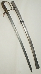 Szabla polska oficerska wz.22 z pochwą. Rękojeść zamknięta, oprawa mosiężna, jelec krzyżowo kabłąkowy, obciągnięty wiśniową skórą. Karbowania na trzonie rękojeści słabo zaznaczone, drut mosiężny którym owinięto rękojeść słabo naprężony.Skóra na rękojeści...więcej Szabla polska oficerska wz.22 z pochwą. Rękojeść zamknięta, oprawa mosiężna, jelec krzyżowo kabłąkowy, obciągnięty wiśniową skórą. Karbowania na trzonie rękojeści słabo zaznaczone, drut mosiężny którym owinięto rękojeść słabo naprężony.Skóra na rękojeści nierówno naciągnięta, prawdopodobnie nieoryginalna. Kapturek mosiężny długi z warkoczem sięgającym jelca,mocowanym od góry mosiężnym nitem z podkładką. Krzyż jelca w części grzbietowej zaokrąglony. Na krzyżu jelca w części grzbietowej mosiężna wystająca śrubka. Głownia stalowa o nieznacznej krzywiźnie, sztych centryczny z pojedyncza bruzdą. Na płazie zewnętrznym trawiony ornament z orłem w koronie i napisem "HONOR I OJCZYZNA". Na płazie wewnętrznym pod nasadą "G.BOROWSKI LESZNO 27 WARSZAWA". Szerokość głowni u nasady 29,4 mm grubość grzbietu u nasady 5mm. Rękojeść długości 15,5 cm,jelec 12 cm. Pochwa długości 82 cm, stalowa z dwiema ryfkami i ruchomymi kółkami zakończona ostrogą. |