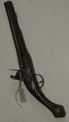 Pistolet skałkowy rosyjski. Łoże drewniane sięgające do wylotu lufy. Gniazdo wycioru i tulejka mosiężne. Wycioru brak. Kolba rozszerzona na głowicy. Trzewik mosiężny spłaszczony i opatrzony guzikiem o długich bocznych wąsach. Osłona spustu owalna, mosiężna. Wąs tylny s...więcej Pistolet skałkowy rosyjski. Łoże drewniane sięgające do wylotu lufy. Gniazdo wycioru i tulejka mosiężne. Wycioru brak. Kolba rozszerzona na głowicy. Trzewik mosiężny spłaszczony i opatrzony guzikiem o długich bocznych wąsach. Osłona spustu owalna, mosiężna. Wąs tylny sięga do głowicy. Wąs przedni konturowany.Zamek skałkowy z zewnętrzną sprężyna krzesiwa. Spust pojedynczy. Lufa niegwintowana, w części dolnej ośmioboczna, ku wylotowi okrągła. Kaliber 17 mm. Na prawej blaszce zamka nieuporządkowane ryty. Można jedynie odczytać cyfry 1817. |
