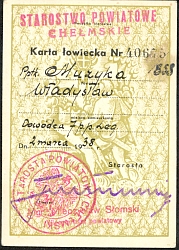 Karta Łowiecka nr.40675 ppłk Władysława Muzyki |