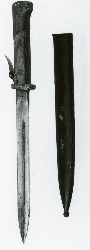 Bagnet polski wz. 1924 do karabinu Mauser wz. 98. Kompletny z pochwą. Rękojeść stalowa z drewnianymi okładzinami, mocowanymi na dwie śruby. Zatrzask w głowicy niesprawny. Jelec stalowy, krótki. Głownia stalowa, długości 24,8cm, z pojedynczym, szerokim zbroczem. Na płazach p...więcej Bagnet polski wz. 1924 do karabinu Mauser wz. 98. Kompletny z pochwą. Rękojeść stalowa z drewnianymi okładzinami, mocowanymi na dwie śruby. Zatrzask w głowicy niesprawny. Jelec stalowy, krótki. Głownia stalowa, długości 24,8cm, z pojedynczym, szerokim zbroczem. Na płazach poniżej jelca sygnatury: orzeł polski i litery W.P. na jednym, PERKUN S 197555 na drugim płazie. Pochwa z blachy stalowej o długości 37cm, zakończona kulką. U wylotu pochwy znajduje się zaczep do żabki. Pochwa malowana na czarno. |