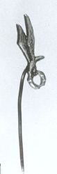 Kleszczyki chirurgiczne typu kocher, zagięte. Rękojeść nożyczkowa. W części roboczej zagięte, poprzecznie żłobkowane, zakończone "ząbkiem". Sygnatury: przy łączeniu ramion rękojeści wybite: 84. Na jednym z ramion wizerunek węża owiniętego wokół laski zakończonej ...więcej Kleszczyki chirurgiczne typu kocher, zagięte. Rękojeść nożyczkowa. W części roboczej zagięte, poprzecznie żłobkowane, zakończone "ząbkiem". Sygnatury: przy łączeniu ramion rękojeści wybite: 84. Na jednym z ramion wizerunek węża owiniętego wokół laski zakończonej gałką i zwieńczonej koroną. Stal chromowana. Niewielkie ubytki