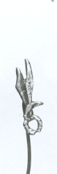 Miniatura Znaku Spadochronowego wykonana tłoczeniem z blachy stalowej kadmowanej. Odznaka w kształcie atakującego orła trzymającego w szponach wieniec laurowy. Całości kolorze satynowanego srebra. Mocowane przy pomocy szpilki przylutowanej na odwrocie. |