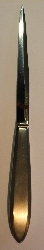 Nóż o dwustronnym ostrzu (na grzbiecie zaostrzone tylko na 3/4 długości). Ostrze wąskie, chromowane, ze śladami korozji. Rękojeść masywna, ośmiokątna w przekroju. Ostrze stalowe, chromowane, ze śladami korozji, rękojeść ze stali nierdzewnej (?). Sygnatury: na ostrzu napi...więcej Nóż o dwustronnym ostrzu (na grzbiecie zaostrzone tylko na 3/4 długości). Ostrze wąskie, chromowane, ze śladami korozji. Rękojeść masywna, ośmiokątna w przekroju. Ostrze stalowe, chromowane, ze śladami korozji, rękojeść ze stali nierdzewnej (?). Sygnatury: na ostrzu napis A MANN