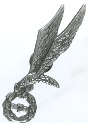 Oznaka wojsk powietrznodesantowych, tłoczona z blachy oksydowanej. Odznaka w kształcie atakującego orła trzymającego w szponach wieniec laurowy. Na środkowej części wieńca liczba 7 informująca o liczbie oddanych skoków. Na odwrocie mocowanie w formie trzpienia z nakrętką. ...więcej Oznaka wojsk powietrznodesantowych, tłoczona z blachy oksydowanej. Odznaka w kształcie atakującego orła trzymającego w szponach wieniec laurowy. Na środkowej części wieńca liczba 7 informująca o liczbie oddanych skoków. Na odwrocie mocowanie w formie trzpienia z nakrętką. |
