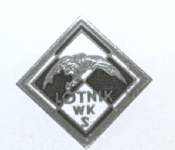 Odznaka metalowa, pokryta emalią. Wypełniona szachownicą biało-czerwoną. Po środku orzeł lotniczy, barwiony na złoty kolor, pod nim napis : LOTNIK WK S