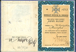 Legitymacja nr. 1503 uprawniająca do noszenia Krzyża Srebrnego Orderu Woj...więcej Legitymacja nr. 1503 uprawniająca do noszenia Krzyża Srebrnego Orderu Wojskowego "Virtuti Militari" |