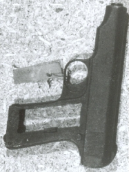 Brak okładziny rękojeści i magazynka. Zamek unieruchomiony, całość skorodowana. |