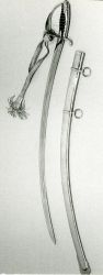 Szabla oficera kawalerii wz. 1917. Rękojeść stalowa, niklowana. Na warkoczu kapturka tłoczony orzeł wojskowy. Wąsy jelca z ornamentem roślinnym. Kabłąk z dodatkowymi bocznymi obłękami. Głownia niklowana z trzema bruzdami, u nasady trawiony napis: ZA WIARĘ I OJCZYZNĘ 1919 ...więcej Szabla oficera kawalerii wz. 1917. Rękojeść stalowa, niklowana. Na warkoczu kapturka tłoczony orzeł wojskowy. Wąsy jelca z ornamentem roślinnym. Kabłąk z dodatkowymi bocznymi obłękami. Głownia niklowana z trzema bruzdami, u nasady trawiony napis: ZA WIARĘ I OJCZYZNĘ 1919 i ornament roślinny. Powyżej sygnatura G. BOROWSKI WARSZAWA. Temblak podszyty skórą, haftowany srebrzystą nicią, frędzle oprawione w srebrne (?) okucie. Pochwa stalowa, z dwoma ruchomymi koluszkami, stalowa. Szabla wykonana na indywidualne zamówienie w okresie międzywojennym. |
