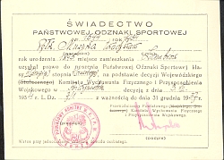 Swiadectwo nr 1544 Państwowej Odznaki Sportowej (ppłk Władysława Muzyki...więcej Swiadectwo nr 1544 Państwowej Odznaki Sportowej (ppłk Władysława Muzyki) |