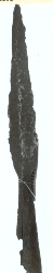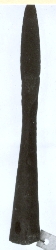 Stalowy grot włóczni, typ V wg. A Nadolskiego. Liść długości 9,5cm ze słabo zaznaczoną ością. Tuleja masywna, długości 13cm i średnicy wewnętrznej 2,2cm, skuwana na zakładkę. Otwór mocujący o dużej średnicy, na górnej powierzchni tulei. Grot jest zbliżony stylisty...więcej Stalowy grot włóczni, typ V wg. A Nadolskiego. Liść długości 9,5cm ze słabo zaznaczoną ością. Tuleja masywna, długości 13cm i średnicy wewnętrznej 2,2cm, skuwana na zakładkę. Otwór mocujący o dużej średnicy, na górnej powierzchni tulei. Grot jest zbliżony stylistycznie od egzemplarzy późnośredniowiecznych. |