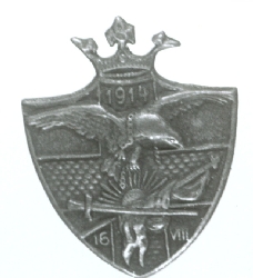 Odznaka pamiątkowa ZTG "Sokół", w kształcie tarczy zwieńczonej koroną. Na tarczy zrywający się do lotu orzeł z zerwanym łańcuchem. Poniżej wschodzące słońce, sztandar i szabla. Na samej tarczy krzyż i data 16 VIII 1914. Z tyłu agrafkowe zapięcie, brak sygnatur. |
