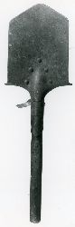 Stalowa łopatka piechoty, łączona na 5 nitów. Trzonek mocowany w oprawie pierścieniem o szerokości 3,5cm. Na trzonku, powyżej nasady wyryte litery KRE... Brak innych widocznych sygnatur. |