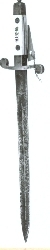 Kordzik oficerski, prawdopodobnie oficera lotnictwa LWP, wykonany tuż po II wojnie światowej. Głownia wykonana z fragmentu szabli oficerskiej Wehrmachtu, z pojedynczym zbroczem, sztych centryczny, zdobiony na grzbiecie i obu stronach ostrza trawionym ornamentem roślinnym. U nasady ...więcej Kordzik oficerski, prawdopodobnie oficera lotnictwa LWP, wykonany tuż po II wojnie światowej. Głownia wykonana z fragmentu szabli oficerskiej Wehrmachtu, z pojedynczym zbroczem, sztych centryczny, zdobiony na grzbiecie i obu stronach ostrza trawionym ornamentem roślinnym. U nasady głowni, w półkolu sygnowanie :Carl Kaiser Solingen. Rękojeść wzorowana na kordzikach oficerskich lotnictwa ZSRR. Mosiężny jelec w kształcie litery "S". Okładziny rękojeści wykonane z białej kości przymocowanej mosiężnymi nitami z nakrętkami. Głowica zdobiona kwadratową mosiężna nakładką zakończoną mosiężną kulką. Głowica pokryta wżerami korozyjnymi. |