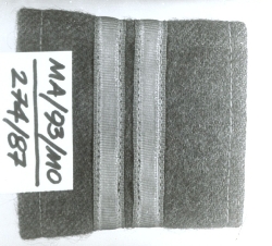 Naszywka naramiennika kaprala PSZ na zachodzie. Wykonana z sukna w kolorze khaki. Zszyta krótszymi brzegami i tym sposobem nakładana na naramiennik. Dłuższe krawędzie stębnowane w odległości 4 mm i 6 mm od brzegu. Pośrodku przechodzą dwa pasy jedwabiu o szerokości 8mm każdy...więcej Naszywka naramiennika kaprala PSZ na zachodzie. Wykonana z sukna w kolorze khaki. Zszyta krótszymi brzegami i tym sposobem nakładana na naramiennik. Dłuższe krawędzie stębnowane w odległości 4 mm i 6 mm od brzegu. Pośrodku przechodzą dwa pasy jedwabiu o szerokości 8mm każdy, oddalone od siebie o 3,5 mm. Paski taśmy w kolorze białym (zabrudzone), po obu stronach zakończone cienką, czerwoną lamówką. Materiał dobrze zachowany, bez uszkodzeń i ubytków. |