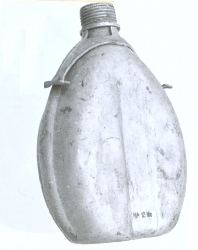 Manierka wojskowa aluminiowa. Kształt lekko spłaszczony, dno płaskie w kształcie elipsy, boczne krawędzie wypukłe. Wzdłuż powiewni pionowej wypukłe pasy chroniące przed wgnieceniami. U nasady gwintowanej szyjki znajduje się gwintowany kołnierz aluminiowy, ruchomy, z dwoma z...więcej Manierka wojskowa aluminiowa. Kształt lekko spłaszczony, dno płaskie w kształcie elipsy, boczne krawędzie wypukłe. Wzdłuż powiewni pionowej wypukłe pasy chroniące przed wgnieceniami. U nasady gwintowanej szyjki znajduje się gwintowany kołnierz aluminiowy, ruchomy, z dwoma zaczepami do mocowania pasków. Brak oryginalnej zakrętki. Brak symboli i sygnatur. |