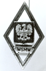 Odznaka pamiątkowa absolwenta Wyższej Szkoły Marynarki Wojenne. Do odznaki wykonanej z aluminium przylutowane jest godło państwowe PRL oraz wstęga z napisem WSMW.Tło pod godłem emaliowane na biało.Całość obramowana tłoczoną ramka. Na odwrocie przylutowany trzpień z gwint...więcej Odznaka pamiątkowa absolwenta Wyższej Szkoły Marynarki Wojenne. Do odznaki wykonanej z aluminium przylutowane jest godło państwowe PRL oraz wstęga z napisem WSMW.Tło pod godłem emaliowane na biało.Całość obramowana tłoczoną ramka. Na odwrocie przylutowany trzpień z gwintem do mocowania i zakrętka aluminiowa, oksydowana, z napisem Mennica Państwowa. |
