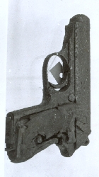 Spust pojedynczy z osłoną. Szyjka kolby wąska, gładka, z płaską antabą do pasa. Stopka kolby płaska. Jest to egzemplarz pochodzący z produkcji chałupniczej. Wykonanie jest prymitywne, poszczególne elementy niedokładnie obrobione i dopasowane. Brak symboli i sygnowań. |
