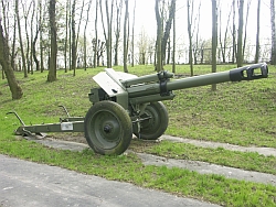 Ciężka haubica polowa kaliber 152,4 mm wz.1943. Zasięg maksymalny 12.400m, odległość strzału bezwzględnego 580m. Długość lufy : 375,4 cm, kąt podniesienia lufy od - 3 do 63 stopni, poziomy kąt ostrzału - 35 stopni. Szybkość strzału od 3 do 4 strzałów na min. Prędko...więcej Ciężka haubica polowa kaliber 152,4 mm wz.1943. Zasięg maksymalny 12.400m, odległość strzału bezwzględnego 580m. Długość lufy : 375,4 cm, kąt podniesienia lufy od - 3 do 63 stopni, poziomy kąt ostrzału - 35 stopni. Szybkość strzału od 3 do 4 strzałów na min. Prędkość marszowa ok. 40 km/h. Łoże kołowe, 2-ogonowe, trakcja motorowa. |