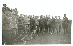 Fotografia w tonacji czarno-białej przedstawiająca scenę na manewrach 7 PPLeg. Na odwrocie odręczna adnotacja powyższej treści. |