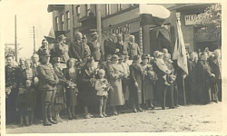 Fotografia w tonacji czarno-białej przedstawiająca defiladę w Chełmie (trybuna). |