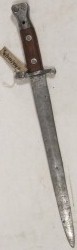 Bagnet angielski do karabinu Lee- Metford. Części metalowe zakonserwowane z licznymi wżerami po korozji. Okładziny drewnianych rękojeści prawdopodobnie dorabiane. Brak sygnowań. |