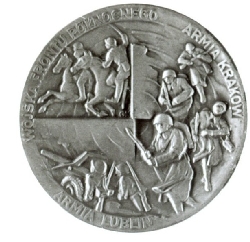 Awers: w polu trójdzielnym przedstawieni żołnierze kawalerii, piechoty, artylerii. Na obrzeżu napis: WOJSKA FRONTU PÓŁNOCNEGO ARMIA KRAKÓW ARMIA LUBLIN.