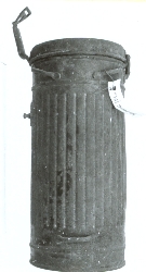 Niemiecka maska przeciwgazowa M30 w puszce metalowej, młodszego typu (dłuższej). Część twarzowa z gumowanego brezentu w kolorze khaki. Szklane okulary w metalowych oprawach. Na krawędziach części twarzowej znajdują się zaczepy i gumowane paski z metalowymi sprzączkami. Na p...więcej Niemiecka maska przeciwgazowa M30 w puszce metalowej, młodszego typu (dłuższej). Część twarzowa z gumowanego brezentu w kolorze khaki. Szklane okulary w metalowych oprawach. Na krawędziach części twarzowej znajdują się zaczepy i gumowane paski z metalowymi sprzączkami. Na pochłaniaczu wytłoczone symbole: FE37 (oznaczenie typu pochłaniacza) AB Fe, nadruk czarny 1940 1141 R April 1941, symbol odbioru wojskowego w prostokącie: orzeł niemiecki, nieczytelny symbol (zapewne Wa.A.) i numer 320. Całość kompletna, dobrze zachowana. |