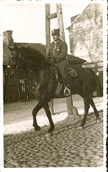 Fotografia w tonacji czarno białej przedstawiająca płk Władysława Muzykę na koniu. Na odwrocie adnotacja odręczna : "płk Władysław Muzyka. Chełm" Stan zachowania bardzo dobry. |