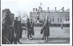 Fotografia w tonacji czarno białej przedstawiająca przysięgę żołnierską w 7 PPLeg. w Chełmie. na odwrocie adnotacja powyższej treści. |