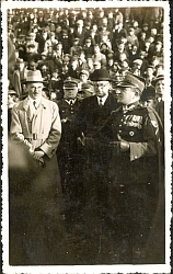 Fotografia w tonacji czarno białej przedstawiająca płk Władysława Muzykę na obchodach święta sportowego. Z tyłu adnotacja odręczna : "Tatuś na obchodach święta sportowego (przed rozdaniem nagród) zdjęcie robione w 1938 r. w Chełmie Lub." Obok pieczęć zakładu fotograf...więcej Fotografia w tonacji czarno białej przedstawiająca płk Władysława Muzykę na obchodach święta sportowego. Z tyłu adnotacja odręczna : "Tatuś na obchodach święta sportowego (przed rozdaniem nagród) zdjęcie robione w 1938 r. w Chełmie Lub." Obok pieczęć zakładu fotograficznego. Stan zachowania dobry. |