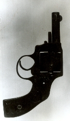 Rewolwer amerykańskiej firmy Hopkins & Allen, tzw. double action. Kaliber 0,38 cala, magazynek bębenkowy mieszczący 6 naboi. Na korpusie czytelne sygnowania: