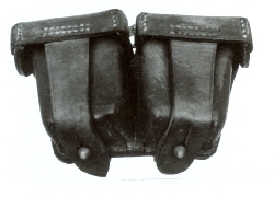 Ładownica skórzana, podwójna, produkcji polskiej. Złożona z dwóch pojemników z klapami. Do klap przymocowane są paski skóry z otworami do zapinania. W tylnej części przy każdym pojemniku znajduje się pasek skóry mocowany czterema nitami do zawieszenia ładownicy na pasie ...więcej Ładownica skórzana, podwójna, produkcji polskiej. Złożona z dwóch pojemników z klapami. Do klap przymocowane są paski skóry z otworami do zapinania. W tylnej części przy każdym pojemniku znajduje się pasek skóry mocowany czterema nitami do zawieszenia ładownicy na pasie głównym. U góry między pojemnikami znajduje się metalowy uchwyt. Na klapach po wewnętrznej stronie nieczytelne pieczecie. |