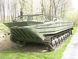 Pływający transporter gąsienicowy. Stosowany w wojskach inżynieryjnych jako środek przeprawowy, lub w morskich operacjach desantowych do przewozu ludzi i sprzętu. Nośność do 10 ton. Prędkość max. 60 km/h na drogach utwardzonych, 10 km/h w wodzie. Napędzany silnikiem wysoko...więcej Pływający transporter gąsienicowy. Stosowany w wojskach inżynieryjnych jako środek przeprawowy, lub w morskich operacjach desantowych do przewozu ludzi i sprzętu. Nośność do 10 ton. Prędkość max. 60 km/h na drogach utwardzonych, 10 km/h w wodzie. Napędzany silnikiem wysokoprężnym o mocy 135 KM. |