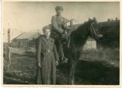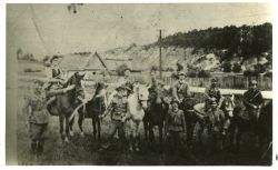 Lasy Janowskie. Bakajewa Griszy Końdr(?) dywers. minerska na koniach zabranych z majątku k/Janowa Lubel. w czerwcu 1944r.