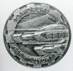 Odznaka Pomorskiego Okręgu Wojskowego. Należy do grupy odznak pamiątkowych i honorowych. Ma kształt koła o średnicy 26mm, metalowa. Przedstawia fragment mapy Polski, na której widnieją sylwetki czołgów. Na obrzeżu odznaki, na tle zębatego okręgu widnieje napis: POMORSKI OK...więcej Odznaka Pomorskiego Okręgu Wojskowego. Należy do grupy odznak pamiątkowych i honorowych. Ma kształt koła o średnicy 26mm, metalowa. Przedstawia fragment mapy Polski, na której widnieją sylwetki czołgów. Na obrzeżu odznaki, na tle zębatego okręgu widnieje napis: POMORSKI OKRĘG WOJSKOWY. Na odwrocie zamocowany gwintowany sztyft, pod którym znajduje się słabo widoczny napis: