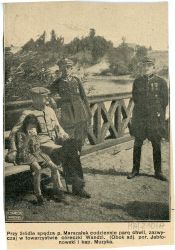 Wycinek z polskiej prasy przedwojennej( tytuł nieznany) z fotografią przedstawiającą marszałka Józefa Piłsudskiego z córką w towarzystwie dwóch oficerów Wojska Polskiego. Pod fotografią adnotacja: Przy źródle spędza p.Marszałek codziennie parę chwil, zazwyczaj w towarz...więcej Wycinek z polskiej prasy przedwojennej( tytuł nieznany) z fotografią przedstawiającą marszałka Józefa Piłsudskiego z córką w towarzystwie dwóch oficerów Wojska Polskiego. Pod fotografią adnotacja: Przy źródle spędza p.Marszałek codziennie parę chwil, zazwyczaj w towarzystwie córeczki Wandzi. ( Obok adj.por. Jabłonowski i kpt. Muzyka). |