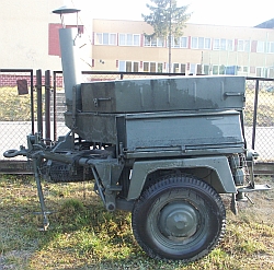 Kuchnia polowa KP-340. Trzon kuchenny, umieszczany na dwukołowym podwoziu stanowi zestaw kotłów i palenisk. Posiada możliwość szybkiego odłączania od podwozia i montażu np. w schronie, na samochodzie itp. Posiada 5 kotłów o pojemności od 20 do 110 litrów. Przystosowana do ...więcej Kuchnia polowa KP-340. Trzon kuchenny, umieszczany na dwukołowym podwoziu stanowi zestaw kotłów i palenisk. Posiada możliwość szybkiego odłączania od podwozia i montażu np. w schronie, na samochodzie itp. Posiada 5 kotłów o pojemności od 20 do 110 litrów. Przystosowana do opalania drewnem i olejem napędowym. Obliczona na żywienie ok. 160 osób. |