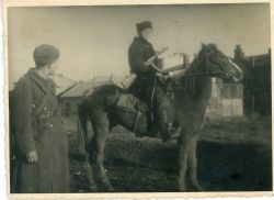 Czarno-biała fotografia przedstawiająca szefa sztabu oddzialu im. Stalina, Kupriana Szubicza. Na odwrocie pieczęć mikołaja Kunickiego i odręczna adnotacja: Szef sztabu oddziału im. Stalina Kuprian Szubicz. Obrońca Porytowego Wzgórza 14.06.1944 |
