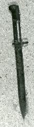 Bagnet wz. 1929 do karabinu Mauser wz. 1898. Brak pochwy, okładzin rękojeści i osłony przeciwogniowej. Jelec stalowy z otworem do mocowania na lufie karabinu. Zatrzask w głowicy sprawny. Na nasadzie głowni wybite sygnatury F.B.RADOM i W.P. |