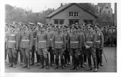 fotografia w tonacji czarno - białej. Przedstawia niemieckich oficerów, stojących w dwuszeregu, w mundurach galowych. W drugim szeregu, czwarty z prawej oficer ( nieznany z nazwiska),który występuje na innych fotografiach z tego zestawu (nr wpływu 1519), być może właściciel f...więcej fotografia w tonacji czarno - białej. Przedstawia niemieckich oficerów, stojących w dwuszeregu, w mundurach galowych. W drugim szeregu, czwarty z prawej oficer ( nieznany z nazwiska),który występuje na innych fotografiach z tego zestawu (nr wpływu 1519), być może właściciel fotografii.