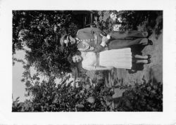 fotografia w tonacji czarno - białej,Przedstawia niemieckiego oficera w galowym mundurze, pozującego do fotografii z młodą kobietą w jasnej sukience. Para pozuje na tle ogrodu kwiatowego. W głębi widoczne fragmenty zabudowań ( dom mieszkalny, willa?)Na odwrocie nadruk firmowy ...więcej fotografia w tonacji czarno - białej,Przedstawia niemieckiego oficera w galowym mundurze, pozującego do fotografii z młodą kobietą w jasnej sukience. Para pozuje na tle ogrodu kwiatowego. W głębi widoczne fragmenty zabudowań ( dom mieszkalny, willa?)Na odwrocie nadruk firmowy na papierze fotograficznym: "Agfa Lupex" i odręcznym pismem, ołówkiem "15". |