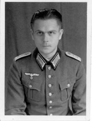 fotografia porucznika piechoty wehrmachtu (popiersie). Fotografia wykonana w atelier fotograficznym. Przedstawia oficera, który w l. 1941 - 42 przebywał w Zamościu ( por. inne fotografie z zestawu nr wpływu 1519). Na odwrocie nadruk firmowy zakładu fotograficznego "Photo- Grube, ...więcej fotografia porucznika piechoty wehrmachtu (popiersie). Fotografia wykonana w atelier fotograficznym. Przedstawia oficera, który w l. 1941 - 42 przebywał w Zamościu ( por. inne fotografie z zestawu nr wpływu 1519). Na odwrocie nadruk firmowy zakładu fotograficznego "Photo- Grube, Delmenhorst Orthstr. 4., na papierze nadruk "LEONAR" ( w kilku miejscach). |