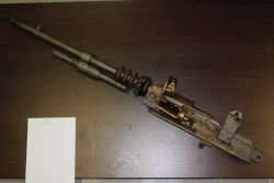 Francuski karabin maszynowy Hotchkiss Mle. 1914 dostosowany w Polsce do amunicji systemu Mausera i montażu w pojazdach pancernych. Posiada uchwyty na lunetę celowniczą i wypełniacz do otworu w jarzmie pancernym typu Napiórkowskiego. Elementy stalowe silnie skorodowane, oznaczenia ...więcej Francuski karabin maszynowy Hotchkiss Mle. 1914 dostosowany w Polsce do amunicji systemu Mausera i montażu w pojazdach pancernych. Posiada uchwyty na lunetę celowniczą i wypełniacz do otworu w jarzmie pancernym typu Napiórkowskiego. Elementy stalowe silnie skorodowane, oznaczenia widoczne tylko częściowo. Brak wielu elementów. Uzupełniony o chwyt pistoletowy MA/529/Mp |