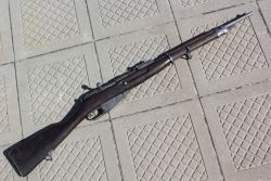 Francuski karabin piechoty używany również w Wojsku Polskim. Wersja wcześniejsza z magazynkiem trzynabojowym. Rekonstrukcja na podstawie oryginalnych elementów, dorobione łoże, śruby poprzeczne łoża, bączki lufy i część lufy (karabin to obrzyn). Na komorze nabojowej widoc...więcej Francuski karabin piechoty używany również w Wojsku Polskim. Wersja wcześniejsza z magazynkiem trzynabojowym. Rekonstrukcja na podstawie oryginalnych elementów, dorobione łoże, śruby poprzeczne łoża, bączki lufy i część lufy (karabin to obrzyn). Na komorze nabojowej widoczne oznaczenia MAS 1917. Na komorze zamkowej oznaczenie producenta i typu: St. Etienne Mle 1907-15. |
